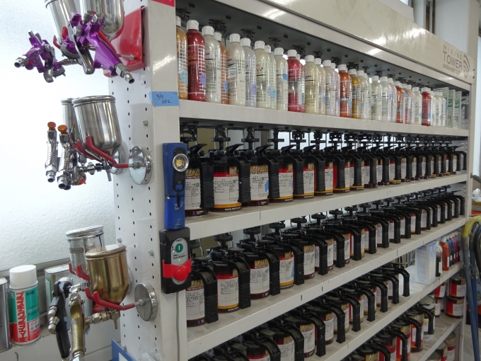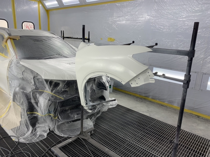 板金・修理工場では、 最新の設備と最高級の塗料を使用し、