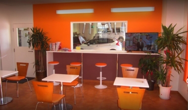 店内が明るい雰囲気で、待合室で飲み物飲み放題。