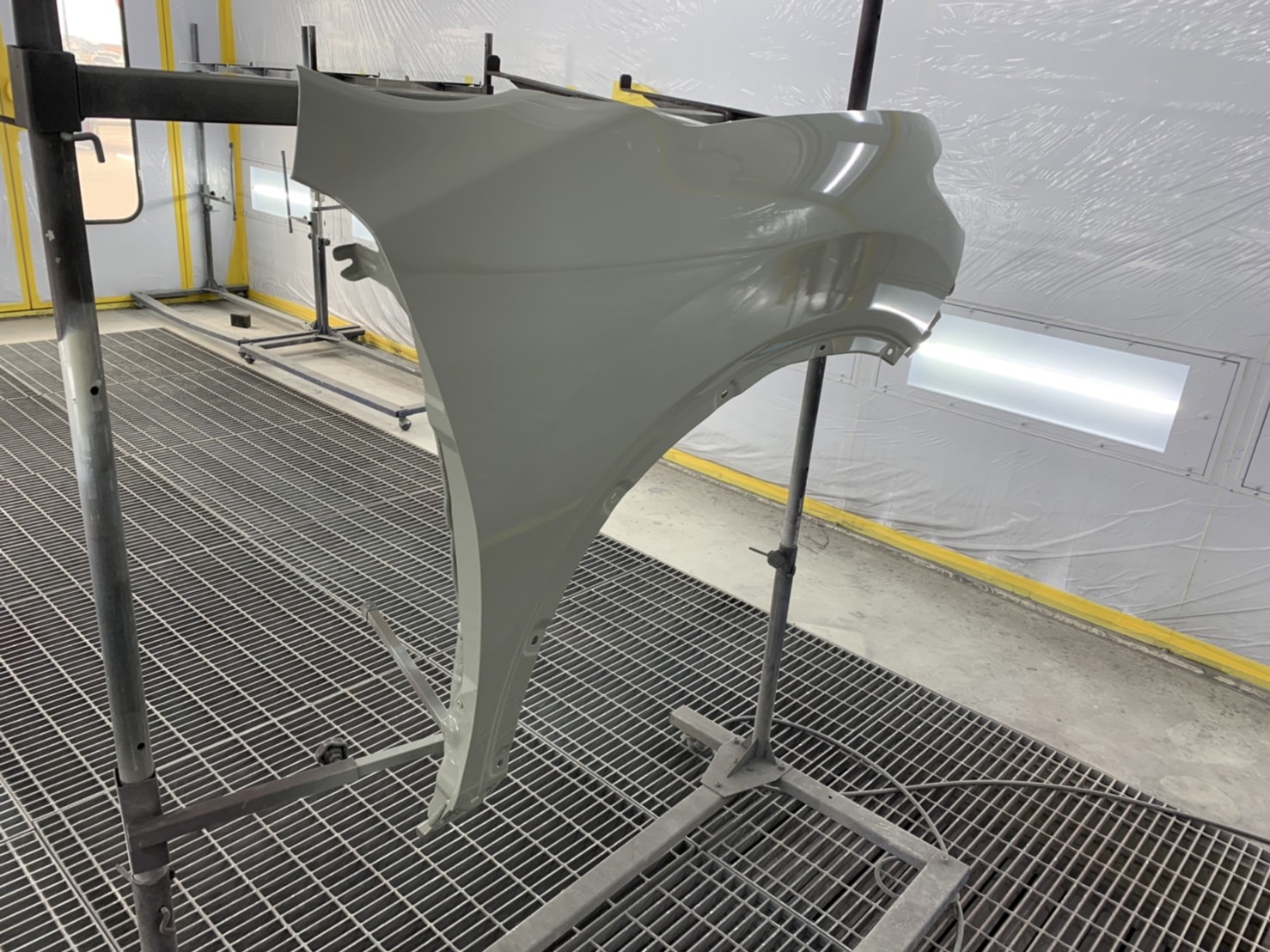 最新鋭の塗装ブースで、調色した塗料を使用し、鈑金作業の仕上げを行います。